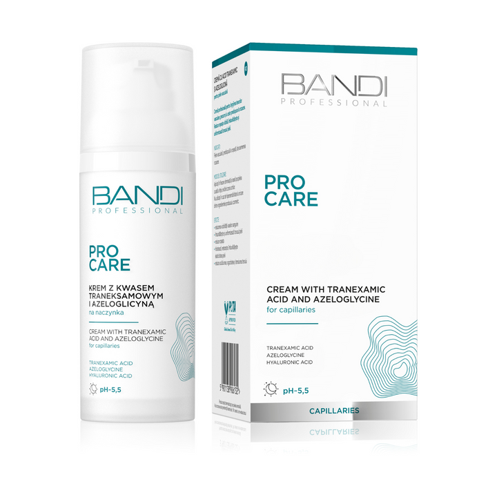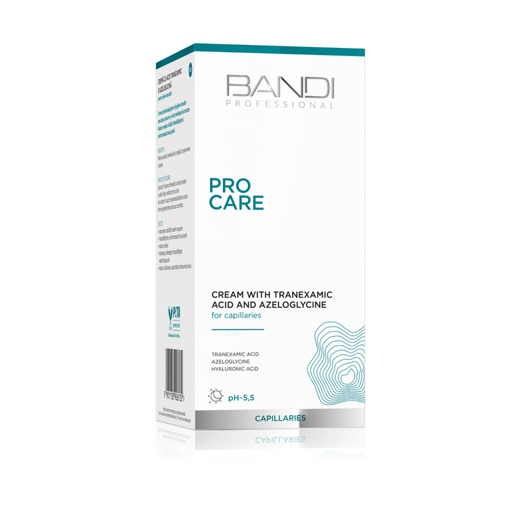 The cream with tranexamic acid and azeloglycine for capillaries is an innovative formula designed for the care of capillary skin prone to redness and irritation. Thanks to its tranexamic acid and azelaic acid content, the product effectively reduces the visibility of dilated blood vessels, reduces redness and soothes. Regular use improves skin tone, strengthens its protective barrier and prevents further damage to capillaries.