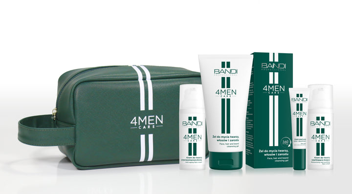 4MEN Care SET is a comprehensive care for men's skin. It contains a 3-in-1 facial cleanser (facial cleansing gel and hair and beard shampoo), facial creams with moisturising and anti-wrinkle properties that additionally soothe skin irritations, including those after shaving, and an eye cream against dark circles, puffiness and wrinkles.
