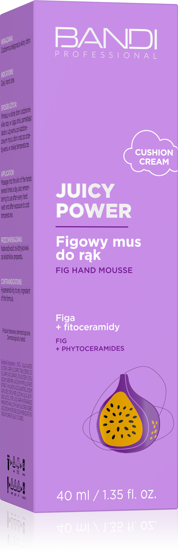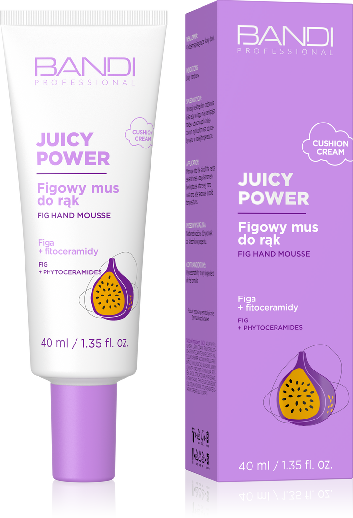Juicy Power Fig Hand Mousse is a light, non-greasy cream with a mousse-like consistency. It contains fig extract, phytoceramides and corn bioferment, which intensely moisturise, regenerate and smooth the skin of the hands. Ideal for daily care of dry, chapped skin.