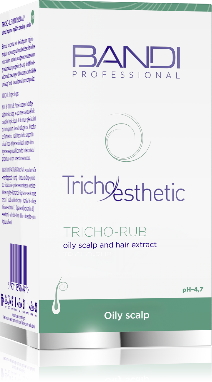 Tricho-rub anti-grease extract is part of a professional trichological treatment, recommended for use alone or in combination with other products from the Tricho-esthetic line.