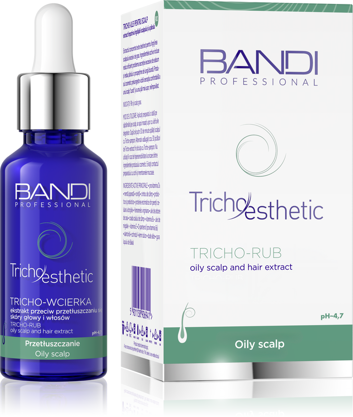 Tricho-rub against oiliness is a specialist trichological rub that effectively regulates sebum secretion, refreshes the scalp and prolongs the feeling of lightness and cleanliness of the hair.