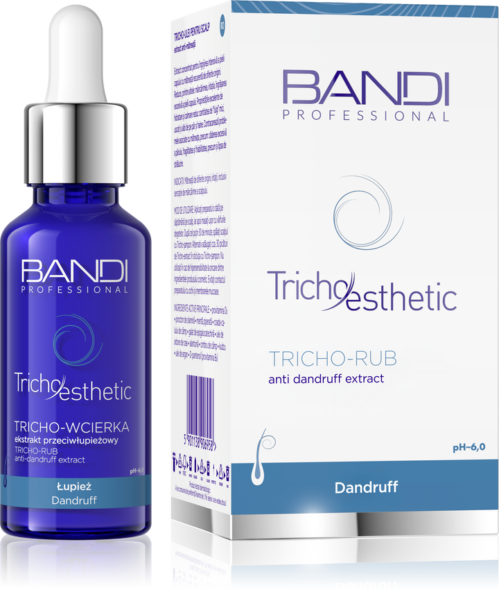 Tricho-rub anti-dandruff extract is a professional trichological treatment that effectively eliminates the symptoms of dandruff, cleanses the scalp and restores its natural balance. Thanks to its advanced formula based on natural active ingredients such as tea tree oil, piroctone olamine, peppermint and D-panthenol, the product reduces dandruff, inhibits excessive sebum secretion and soothes irritation. It is the perfect solution for those who are looking for effective anti-dandruff care without drying out the skin.
